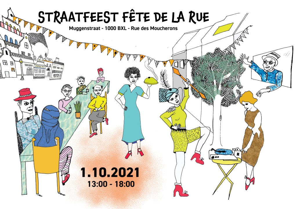 FORUM Noteer in de agenda! Op 1/10/2021 vieren we feest in onze (Muggen)straat! A notez dans l’agenda! Le 1/10/2021 on va fêter dans notre rue (Des Moucherons)!
