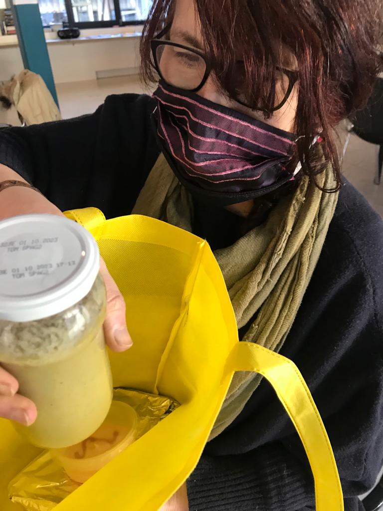 Buurtrestaurant maakt (h)eerlijke maaltijden. Zolang we niet gezellig samen kunnen eten, is er altijd de mogelijkheid om een verse maaltijd te bestellen en af te halen. Hieronder enkele foto’s van blije ‘ophalers’.