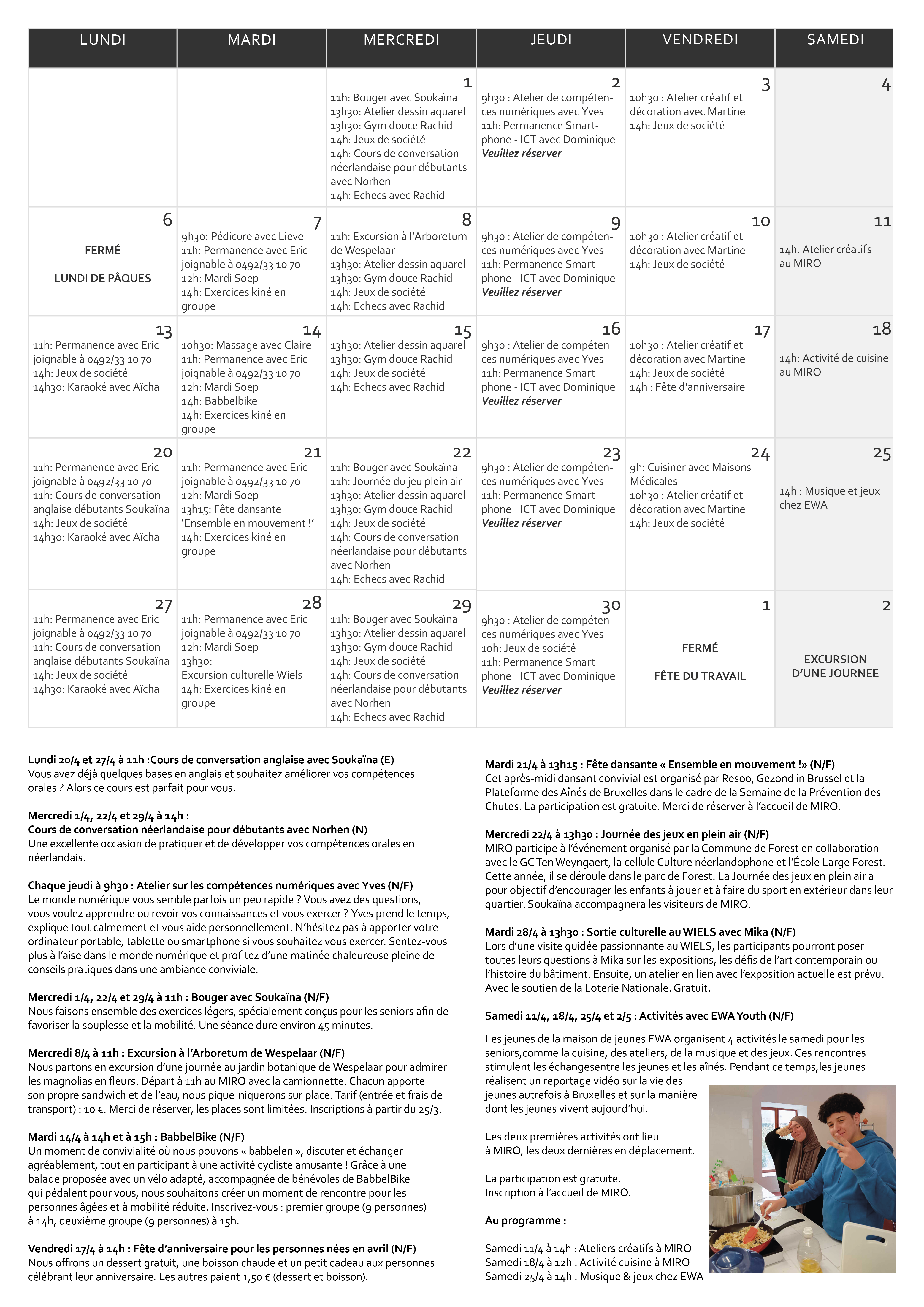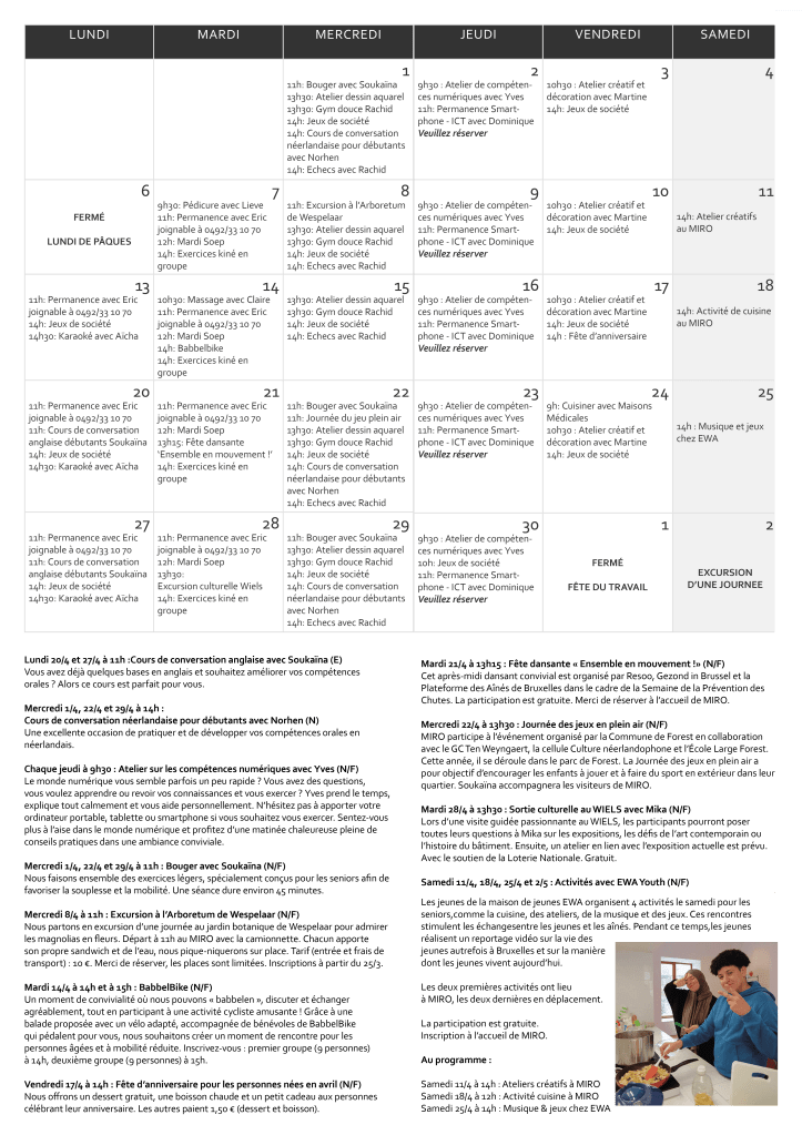 Gelegen in de ‘Wielswijk’ (officieel ‘Laag-Vorst’), organiseert Miro op dagelijkse basis een onthaal, op het gelijkvloers van de Brutopia-site. Buurtbewoners kunnen er terecht voor een babbel of voor een hulpvraag. Miro organiseert activiteiten van socio-culturele aard zoals bewegingsateliers, crea-ateliers, taallessen, hulp bij ICT, etc. Miro biedt eveneens op dagelijkse basis verse maaltijden aan. Benieuwd naar het menu?